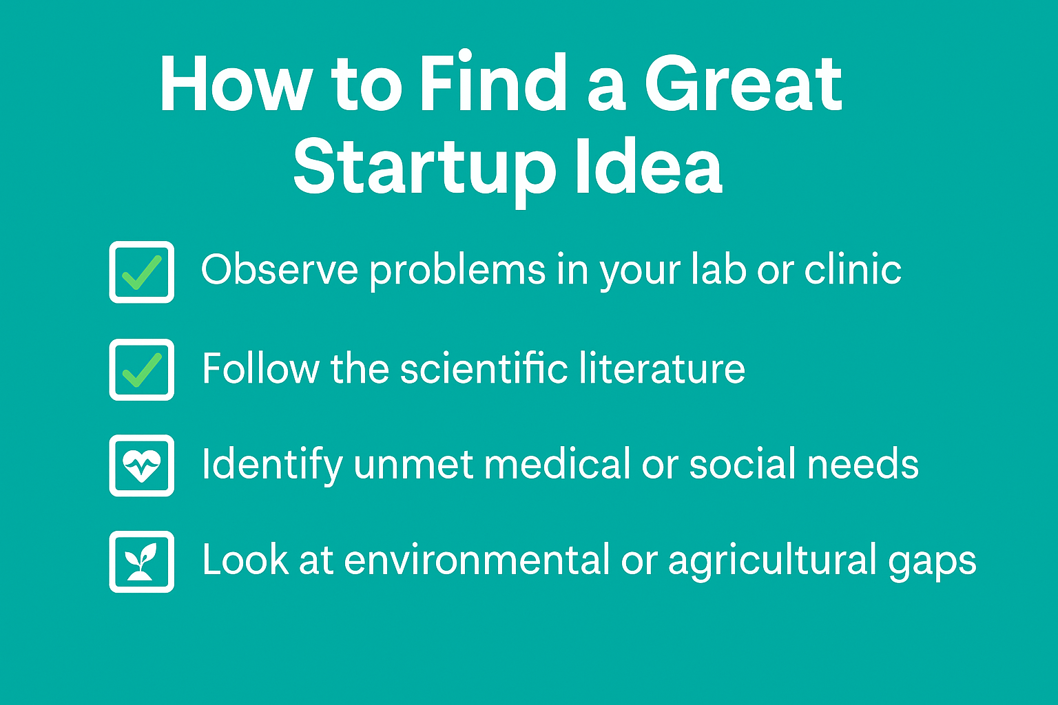 Stay updated on new discoveries. Could they be turned into products or therapies? Sometimes your thesis work itself can be the seed for a startup. - Identify Unmet Medical or Social Needs